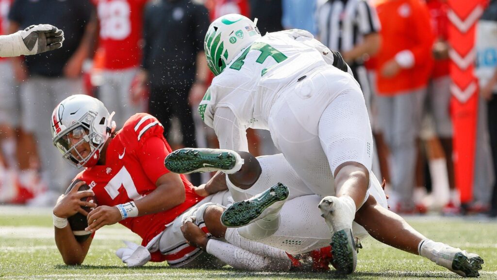 Offensively, Buckeyes quarterback C.J. Stroud has all the physical tools and threw for 484 yards on 54 attempts Saturday. But he’s struggled with his accuracy at times and missed several open throws that could have made all the difference against the Ducks. We saw the same thing in the Minnesota game, during which he completed just 59% of his pass attempts. Oregon was also without two of its best defensive players and still held the Buckeyes to 28 points on their home turf.