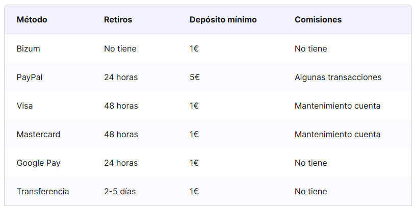 Si hay algo por lo que destaca Betway sobre el resto de casinos en España es por su servicio de atención al cliente con un chat en vivo y atención al cliente 24/7 en castellano. No tiene límites de reintegro y además es uno de los casinos online con Bizum en España. Además de lo ya mencionado, Betway destaca por su aplicación para móviles e intuitiva interfaz.
