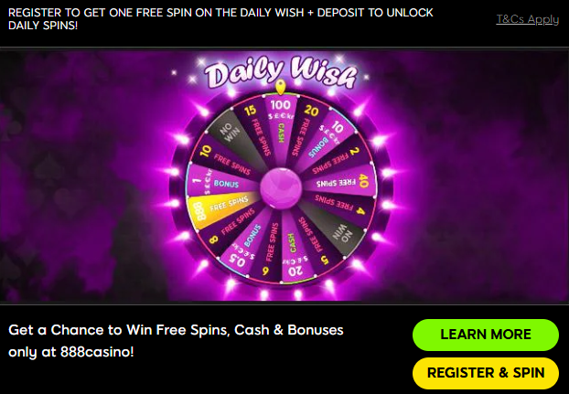 888 Casino gives regular players lots of chances to claim free spins and reloads, but there’s one promo that really stood out to us: Daily Treats. You’ll get something special when you log in and make a qualifying deposit of €10 each day! Spin the special wheel and wait to see where it lands and you might just get lucky enough to bag free spins or bonuses with low wagering requirements of just 5x.