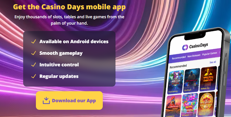 | 📲Casino Days Casino App | iOS (⭐ 4.3) / Android (⭐ 3.1) |