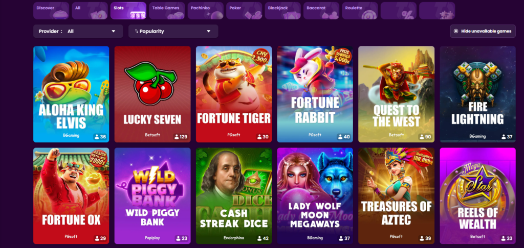 Fresh Casino boasts a selection of thousands of games from major providers PG Soft, 3 Oaks and Play’n GO. You might want to try out new releases like Tiki Tiki Boo Boo, have a spin on jackpots such as Coin Volcano or try your luck at the Aviator instant win game.