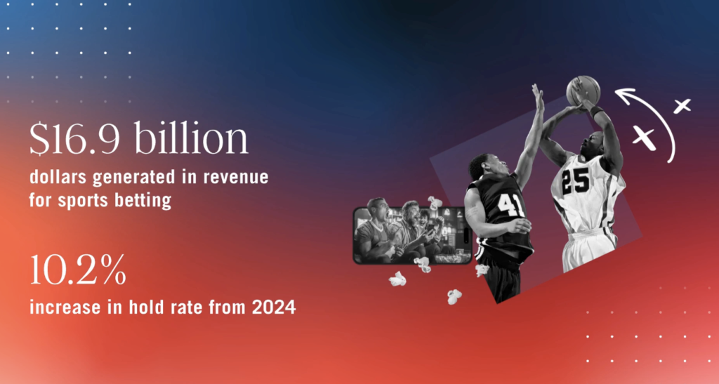 - Sports Betting revenue rose to $16.96 billion, a 22.8 percent increase, on a total handle of $166.94 billion (+11.0 percent). State-regulated sportsbooks generated $3.71 billion in taxes, up 32.4 percent year-over-year.