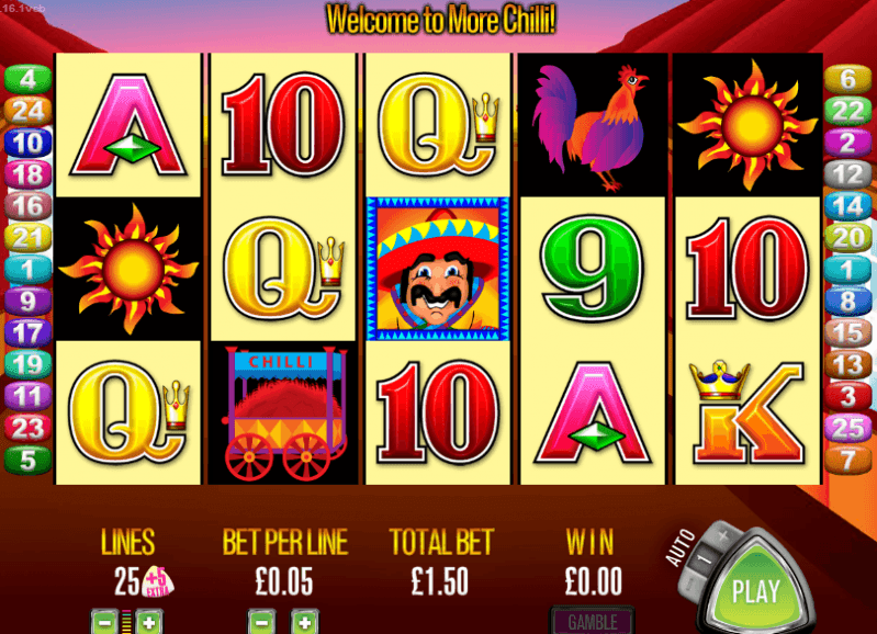 More Chilli also has a gamble feature, which means that you’ll have the chance to risk your winnings after each spin, for a chance at a bigger payout.