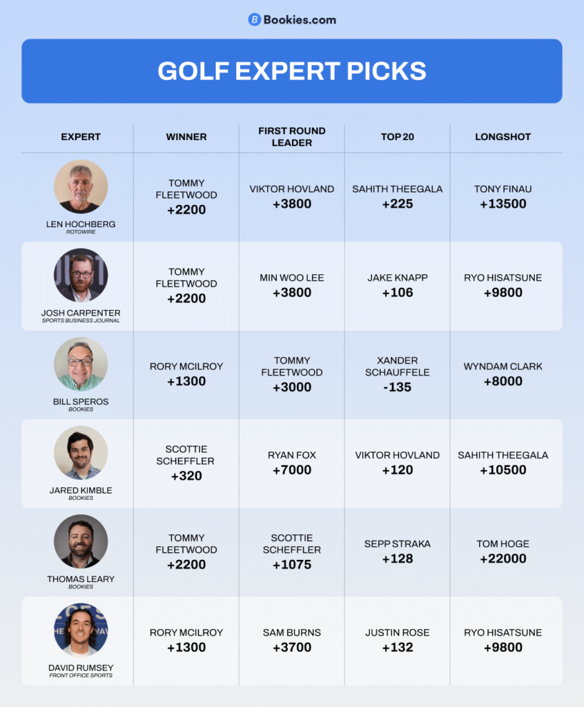 This golf betting season, Bookies.com continues to provide analysis from a variety of experts across the space, including leans on first round leaders, longshots, top 20s, matchups and much more.