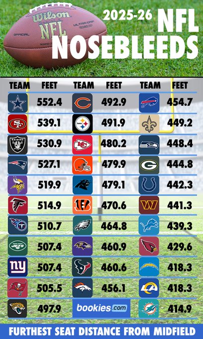 Ahead of the 2025 NFL season, Bookies.com determined the ultimate nosebleed in each NFL stadium, that single worst seat that lies the furthest away from midfield.