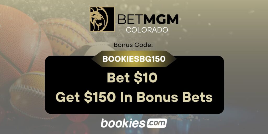 Sign up for the BetMGM Colorado bonus code BOOKIESBG150, deposit $10, and bet on your favorite sports to get $150 in bonus bets after placing a winner $10 bet.
