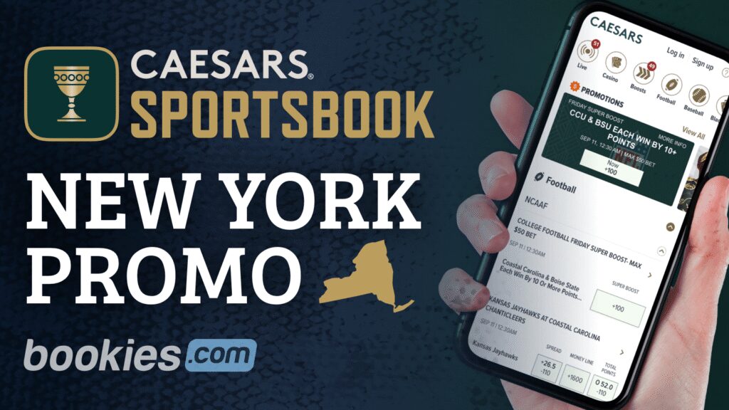 With the Caesars Sportsbook New York promo code, BOOKIESCZR you'll get up to $1,500 in free bets to get started betting with.