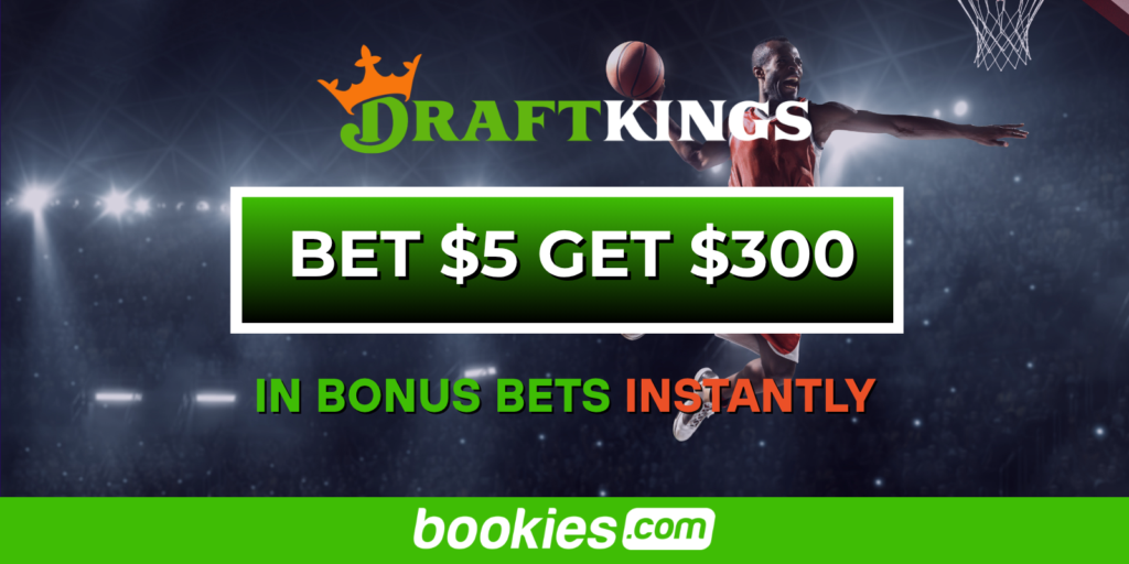 DraftKings Sportsbook is spotlighting a limited-time welcome offer for new users — Bet $5, Get $300 in Bonus Bets Instantly, with no DraftKings promo code required when signing up through Bookies.com.