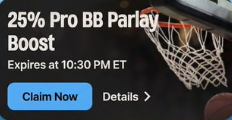 Novig is giving NBA bettors a solid edge with its 25% Pro BB Parlay Boost. This limited-time promo increases the payout on qualifying NBA parlays by 25%, making multi-leg wagers even more rewarding when your picks hit.